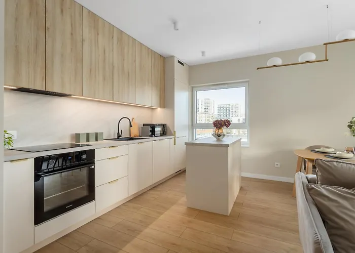 Con una pequeña cocina como parte de sus instalaciones de autoservicio, el apartamento de 50 m² también ofrece a sus huéspedes una zona de comedor para disfrutar de sus comidas. La estación de autobuses Stadion Miejski está a unos minutos a pie de este apartamento.